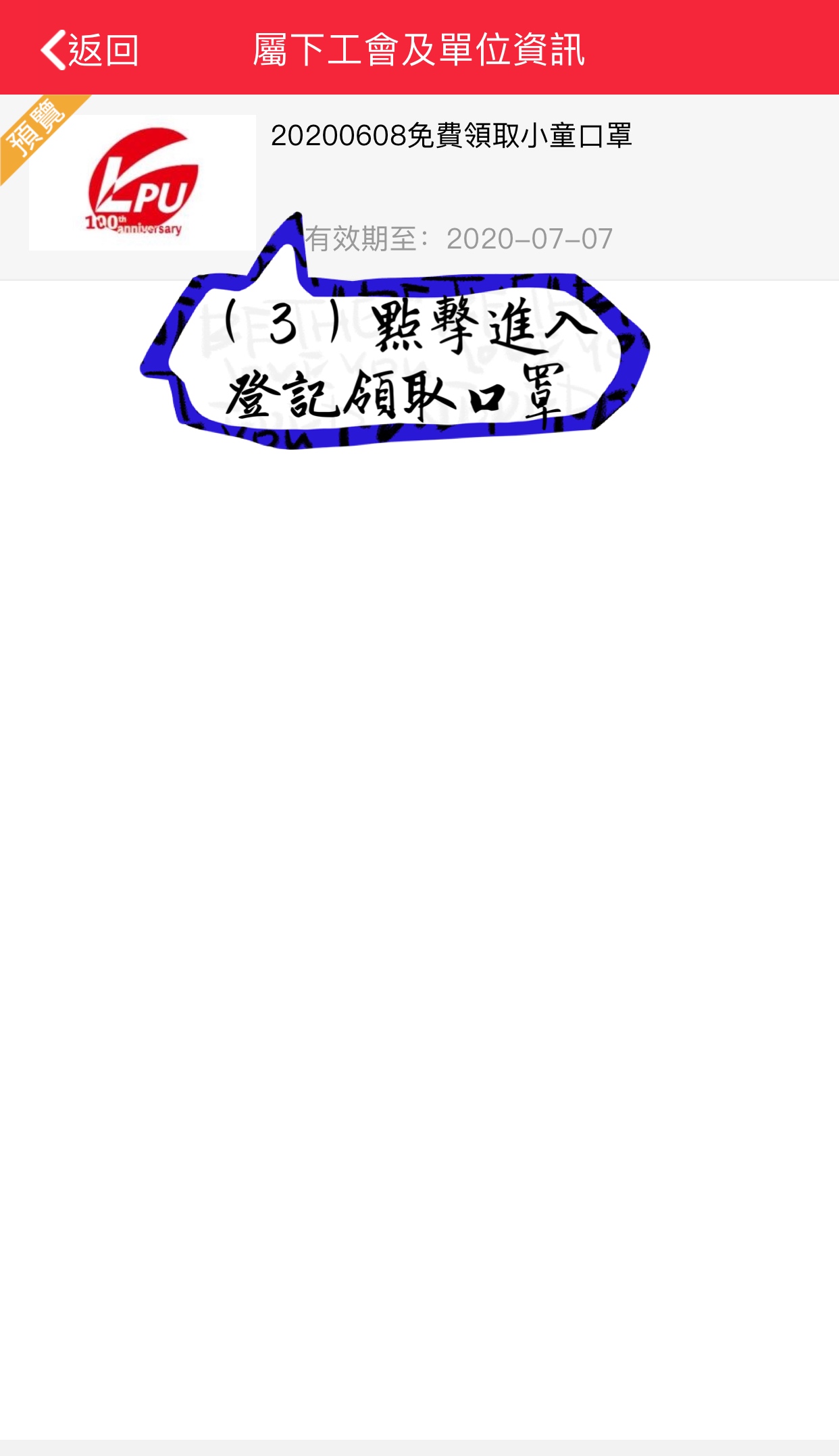 溫馨提示:請 閣下預先以會員身份登入工聯會APP。此派發活動只限【物流從業員工會】的有效會員進行登記。